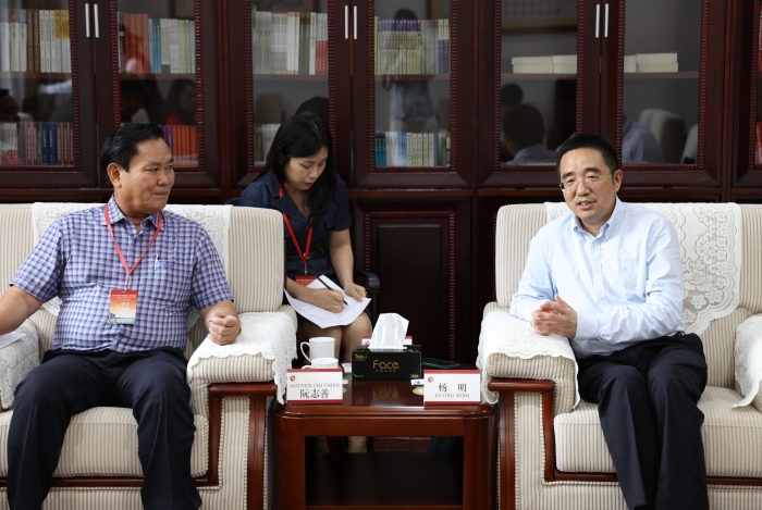 越南薄寮省委常委、福隆县委书记、县人民议会主席阮志善率越共司局级干部考察团于5月26日至30日来我校进行访问,常务副校长杨明会见考察团一行。