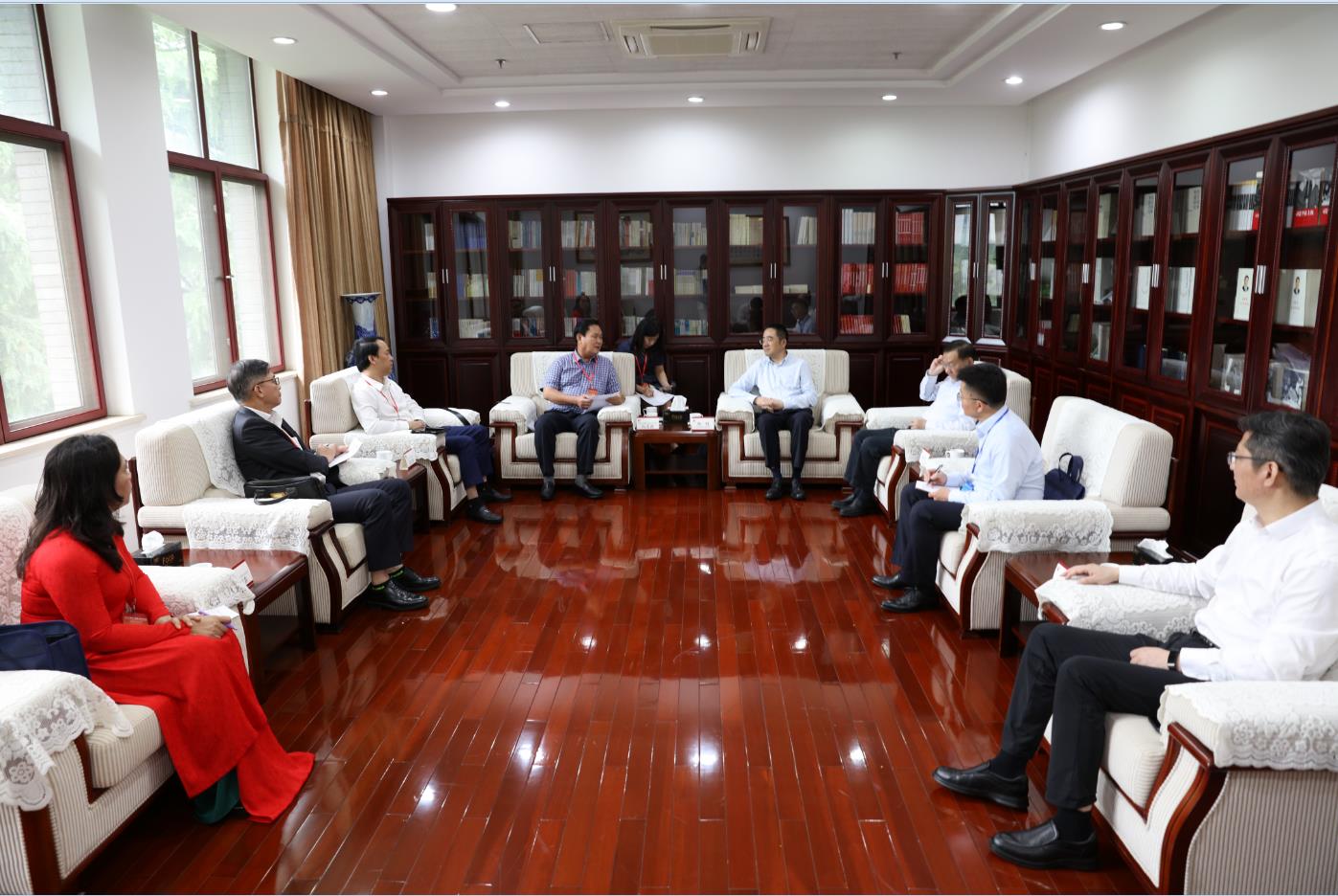 阮志善感谢我校的热情接待。他表示,江苏在全国是走在前列的省份,江苏党校工作在全国党校系统名列前茅,希望江苏与越南各地进一步加强交流合作,为越南的经济社会发展、党的建设与干部教育培训等方面提供更多的经验与方法。