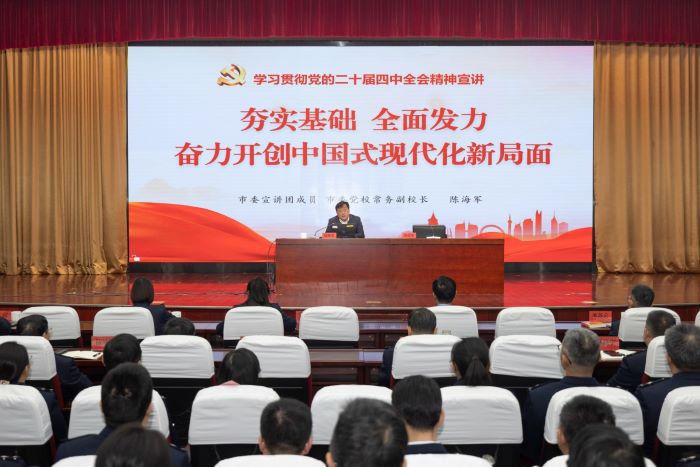 常州市委党校(行政学院)立足职能,从宣讲、课程、研究三方面发力,推动党的二十届四中全会精神在常州落地见效。一是当好创新理论的宣讲先锋。依托“红博士”志愿宣讲队、青年教师宣讲队等同步成立校(院)宣讲团,分层分类开展对外宣讲50余场,将党的创新理论送到群众身边,讲到百姓心里。二是打造精品优质宣讲课程。组织开发《夯实基础 全面发力 奋力开创中国式现代化建设新局面》等优质课程,不断提升干部队伍干事创业本领。三是深化重大理论研究阐释。在《常州日报》“党报宣讲台”刊发“学习贯彻二十届四中全会精神”系列宣传文章16篇,与常州电台等媒体共建“社科百家谈”,弘扬主旋律,传播党校好声音。