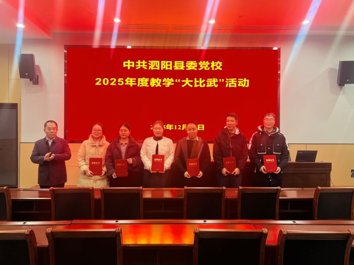 近日,宿迁市泗阳县委党校(行政学校)通过“以赛促学、以赛促教、以赛促建”的方式,搭建“比武擂台”,成功举办2025年度教学“大比武”活动。此次活动由校委会及科室负责人组成评委组,围绕政治标准、内容体系、语言表达、方式方法、仪表仪态五大维度开展严格评审,12名专兼职教师同台竞技,其中青年教师吴金府的课程《开国大典:值得铭记的历史时刻》获一等奖。泗阳县委党校(行政学校)将以此次活动为契机,将教学“大比武”固化为长效机制,持续提升教师教学水平,为党校高质量发展注入强劲动能。