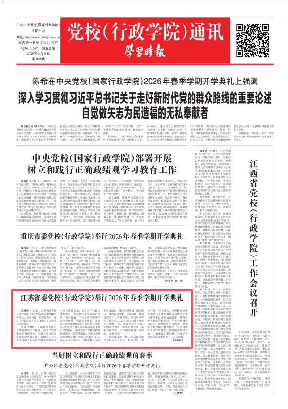 学习时报:江苏省委党校(行政学院)举行2026年春季学期开学典礼