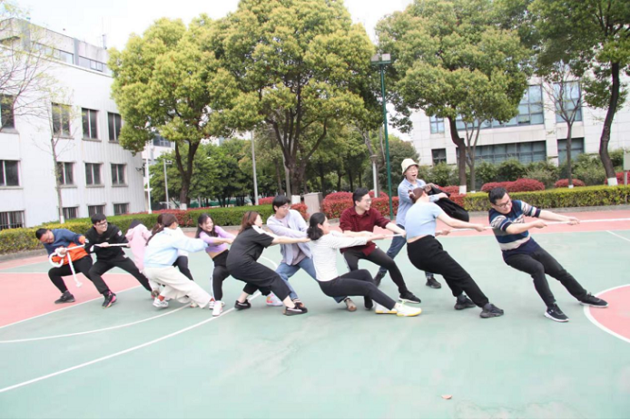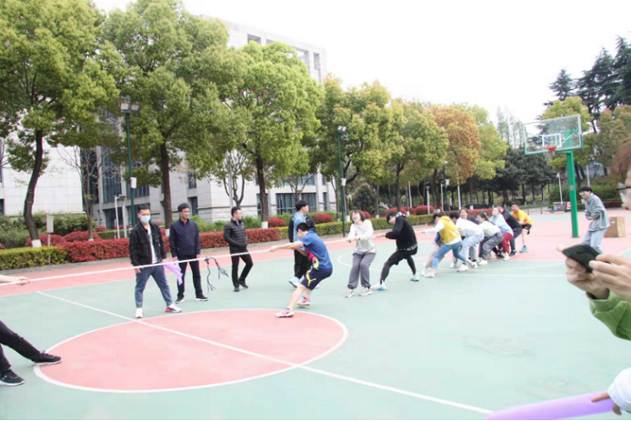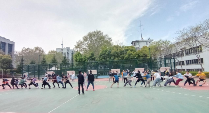 接下来是众人瞩目的拔河比赛,由研一和研二各派12位“大力士”参加,采取三局两胜制。比赛开始前同学们做了充分的热身准备以防受伤。随着发令声响起,两边的同学们都铆足了劲往后拉,观赛的同学们也没闲着,奋力地为各自年级大声加油。最终研一同学凭微弱优势获胜。