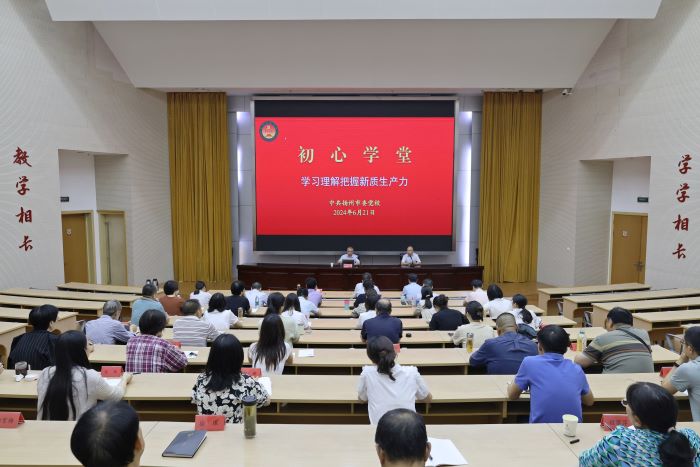 6月21日,扬州市委党校(行政学院)举办第二期“初心学堂”。本期“初心学堂”紧紧围绕“深入学习贯彻习近平总书记重要讲话精神,加快打造发展新质生产力重要阵地”,开展《学习理解把握新质生产力》专题辅导。扬州市党校(行政学院)系统全体教职工在主会场、分会场参学。